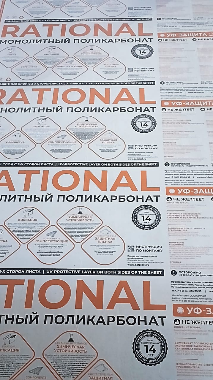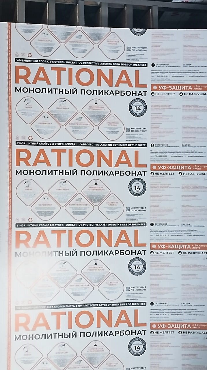 2 мм прозрачный монолитный поликарбонат Rational 2,05*3,05